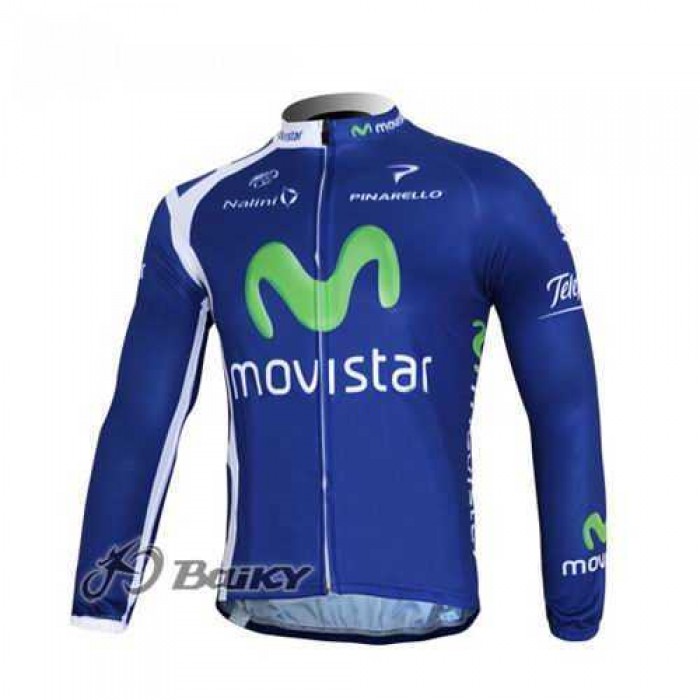 2016 Movistar Wielerkleding Set Wielershirt Lange Mouwen+Lange Fietsbroeken Bib Vliezen Blauw..